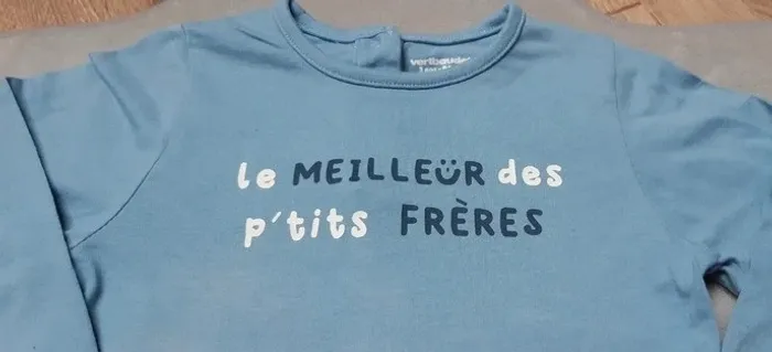 PRIX DE VENTE FERME MERCI Tee-shirt Manches longues vertbaudet bleu inscription "le meilleur des p'tits frères" 36 mois en bon état (porté 2/3 fois seulement mais légère décoloration, visible sur photos) Pour visualiser tous ce que je possède en 36 mois garçon : #ambre6269036mgarçon