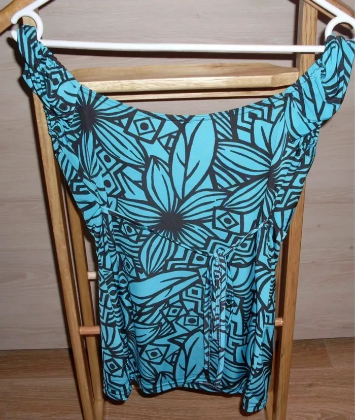 Haut turquoise/choco taille 38/40 neuf sans étiquette - photo numéro 2
