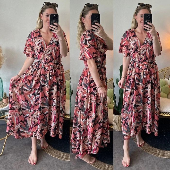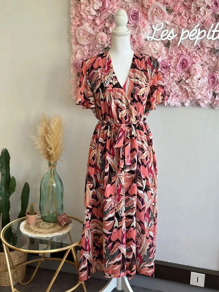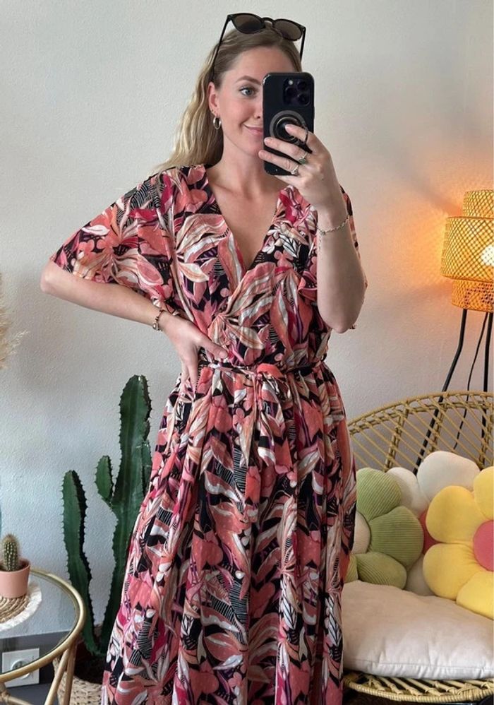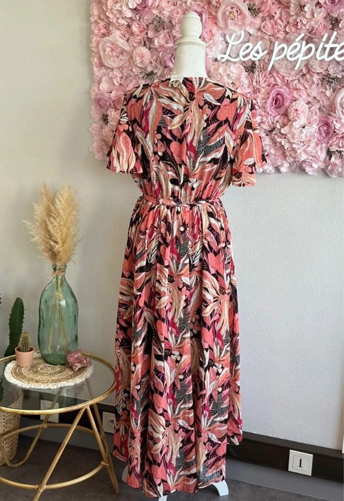 Belle robe longue évasée motifs fleuris corail rose clair taille 44/46 - La Halle - photo numéro 9