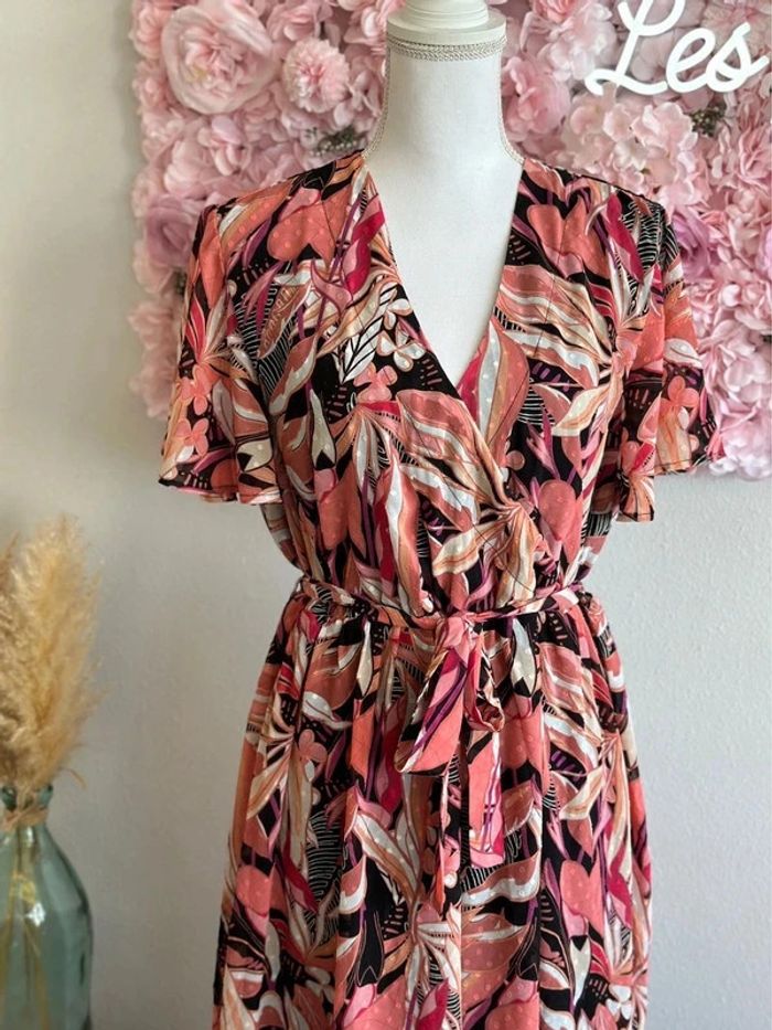 Belle robe longue évasée motifs fleuris corail rose clair taille 44/46 - La Halle - photo numéro 5