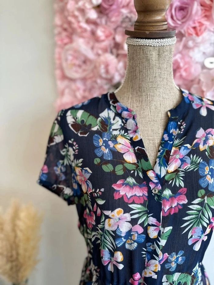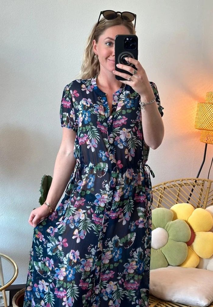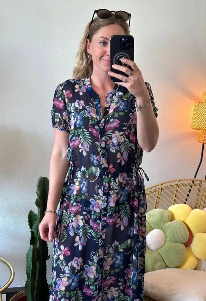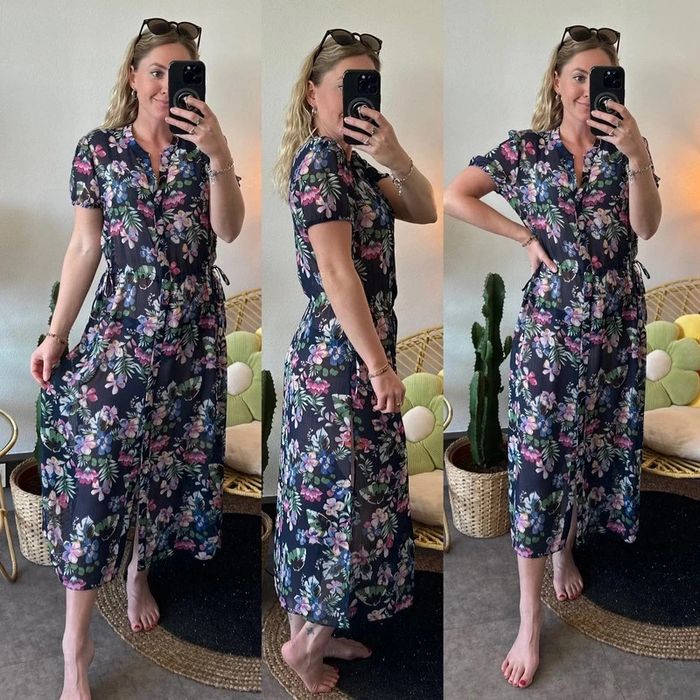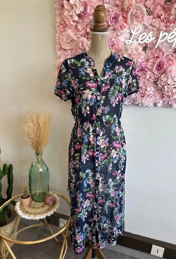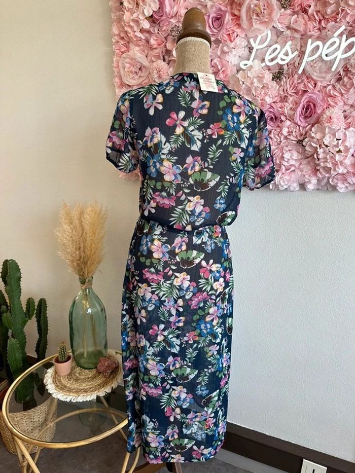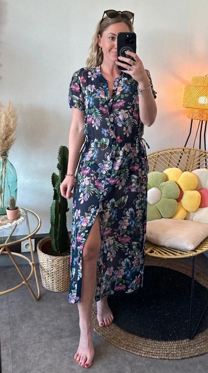 Idéale pour une journée en bord de mer ou une escapade citadine décontractée, cette robe polyvalente peut être portée avec un maillot de bain en dessous ou comme une robe classique avec une doublure. Confectionnée en toile de viscose légère, elle est dotée d’un lien ajustable sur le côté et d’ouvertures en bas et sur les deux côtés pour une liberté de mouvement optimale. En excellent état, elle mesure 120 cm de longueur et promet un look estival rafraîchissant.