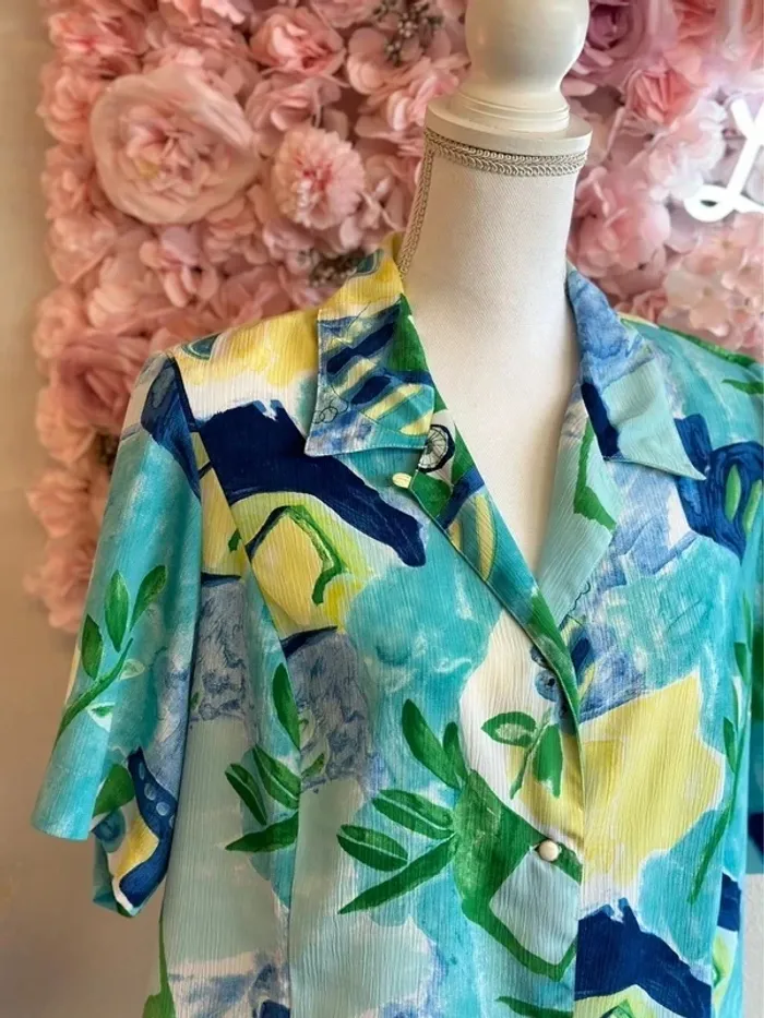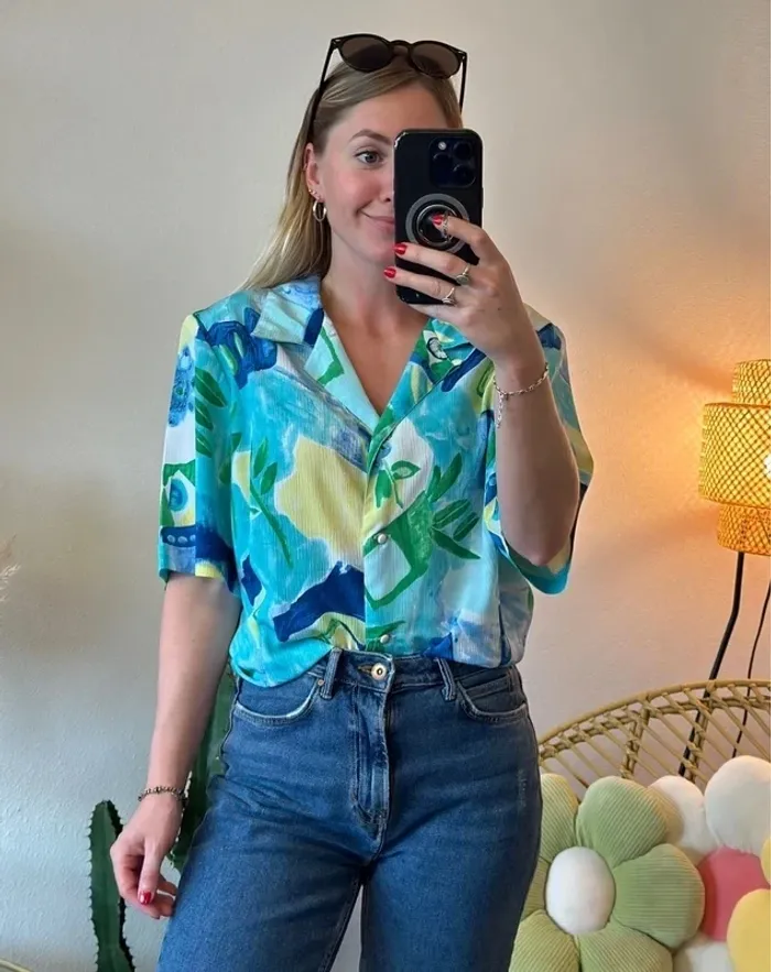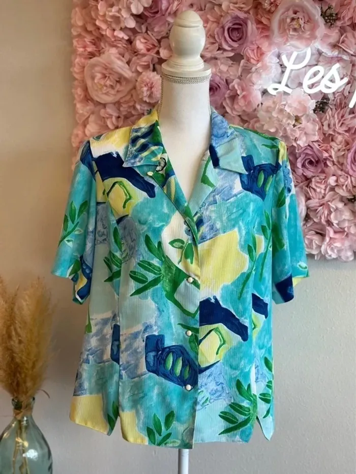 Chemise bleu, vert et jaune à motifs, modèle vintage, taille unique - Ge’vana - photo numéro 1