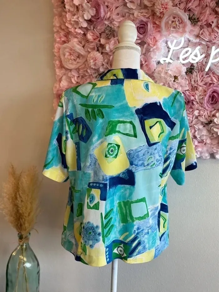 Chemise bleu, vert et jaune à motifs, modèle vintage, taille unique - Ge’vana - photo numéro 8