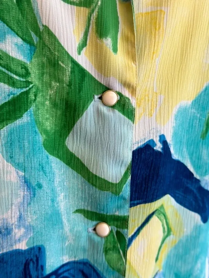 Chemise bleu, vert et jaune à motifs, modèle vintage, taille unique - Ge’vana - photo numéro 7