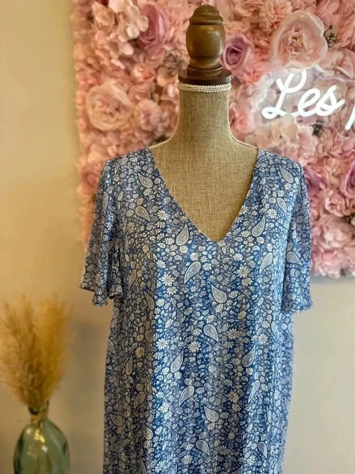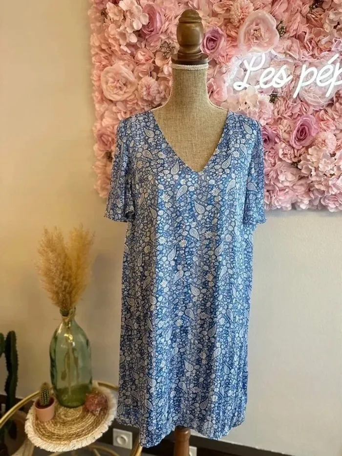 Robe bleue clair avec motif cachemire taille M - Les Petites Bombes - photo numéro 1