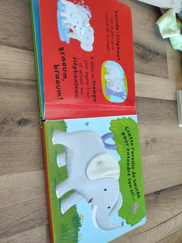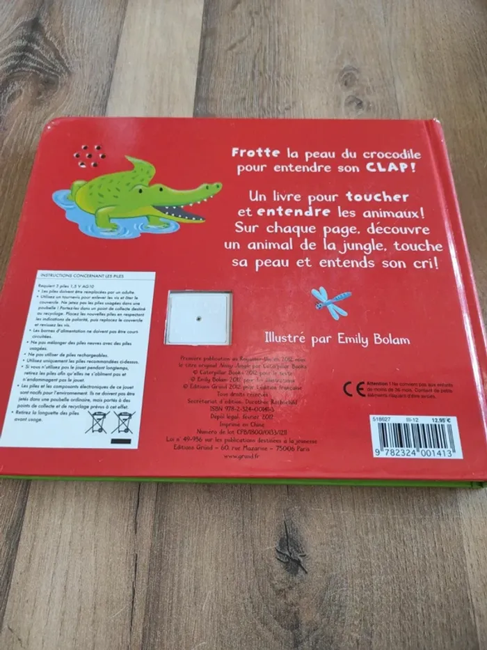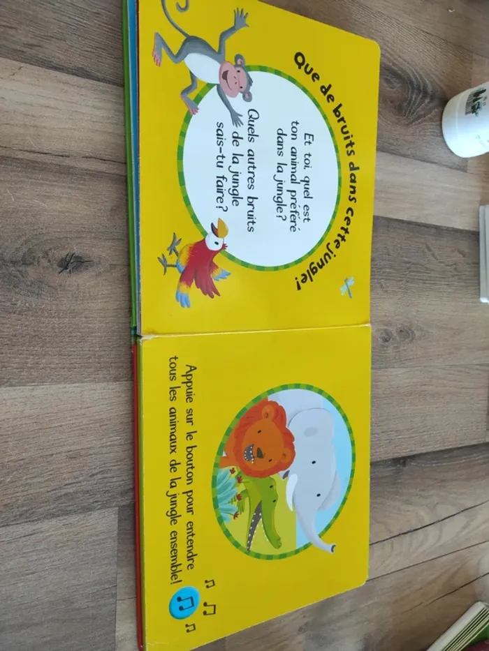 Livre : dans la jungle interactif : Mon livre à toucher et à écouter Les piles viennent d'être changées ! Il fonctionne En bon état de ce faite car il est abîmé mais fonctionne encore #livresmarygio59