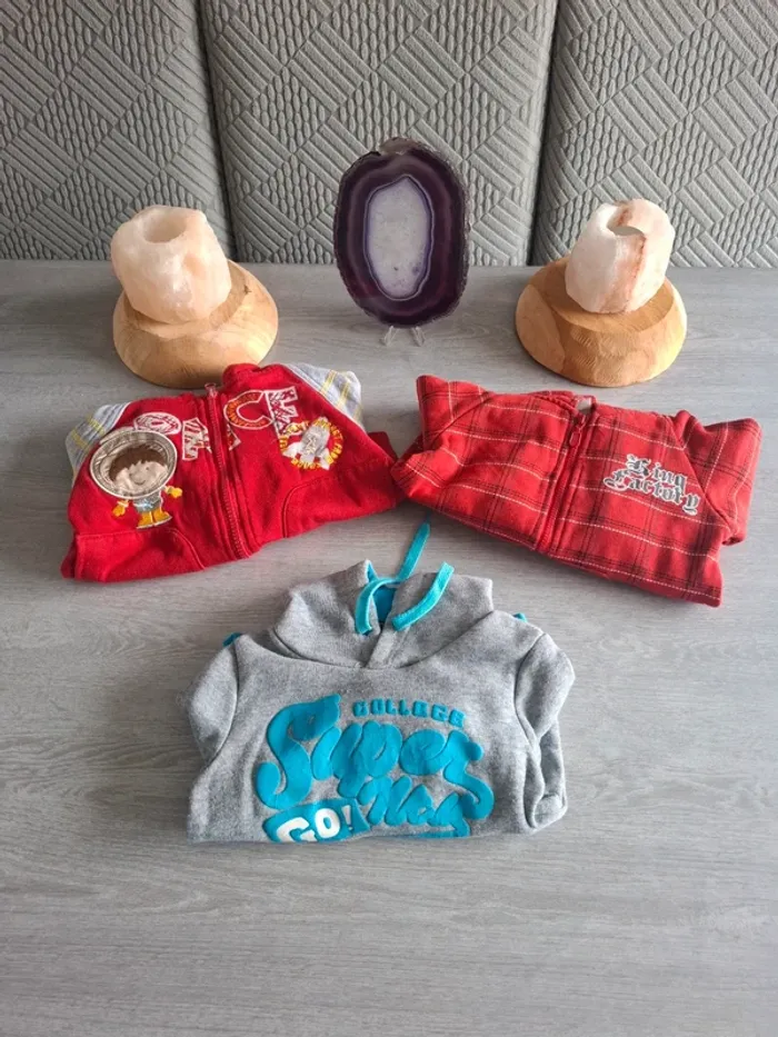 Lot de 3 gilets zippés à capuche dont 1 sweat Très bon état Peut avoir quelques traces d'usures telles que bouloches Taille 18 mois Chicaprie et Tom et kiddy #sebelo02T18moisboy ✉️ 📩 Envois rapide et soigné ✉️ 📩 📬 tous modes d'envois sauf Vintedgo 📬 Maison non-fumeur 🏠 🌈 pleins d'autres jolies choses dans mon dressing n'hésitez pas à regarder Dressing trié par taille et Réduction 🌈 🌸