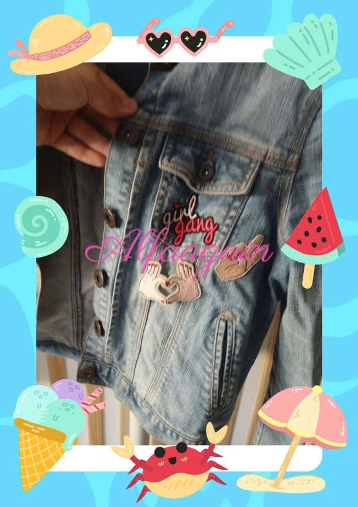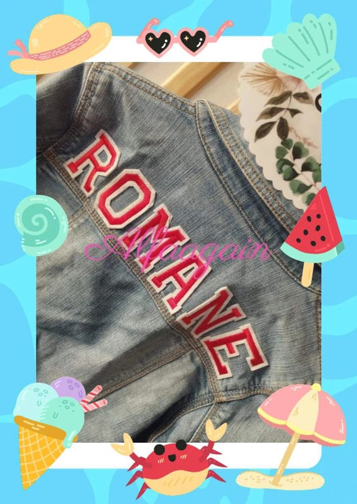 Veste en jean personnalisée ROMANE dans le dos , patchs déco devant . Avec poches . Très bon état. Taille 10ans marque Okaïdi . A vendre 15€ --------------------------- ✏️Informations générales ✏️ 📩Expédition dans la journée en général -hors weekend. 🚭Maison non fumeur / sans animaux 📅Pas de réservation 📸Pas de photo porté 👛 Bon plan Envoi à 99ct (+20% récupéré en bon d'achat) possible uniquement pour les français- me contacter pour plus d'infos 😉 #alfaagain10ansfille #okaidi