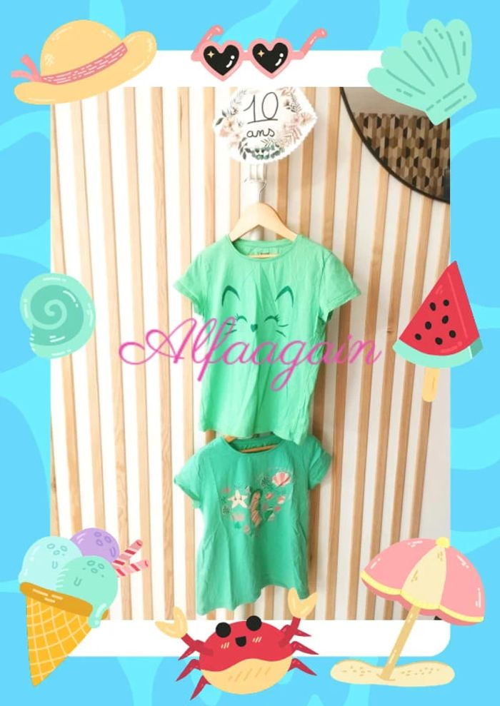 Lot de deux t-shirts manches courtes verts , un thème mer un chat . Taille 10ans , très bon état général .marque Kiabi A vendre 5€ --------------------------- ✏️Informations générales ✏️ 📩Expédition dans la journée en général -hors weekend. 🚭Maison non fumeur / sans animaux 📅Pas de réservation 📸Pas de photo porté 👛 Bon plan Envoi à 99ct (+20% récupéré en bon d'achat) possible uniquement pour les français- me contacter pour plus d'infos 😉 #alfaagain10ansfille #kiabi
