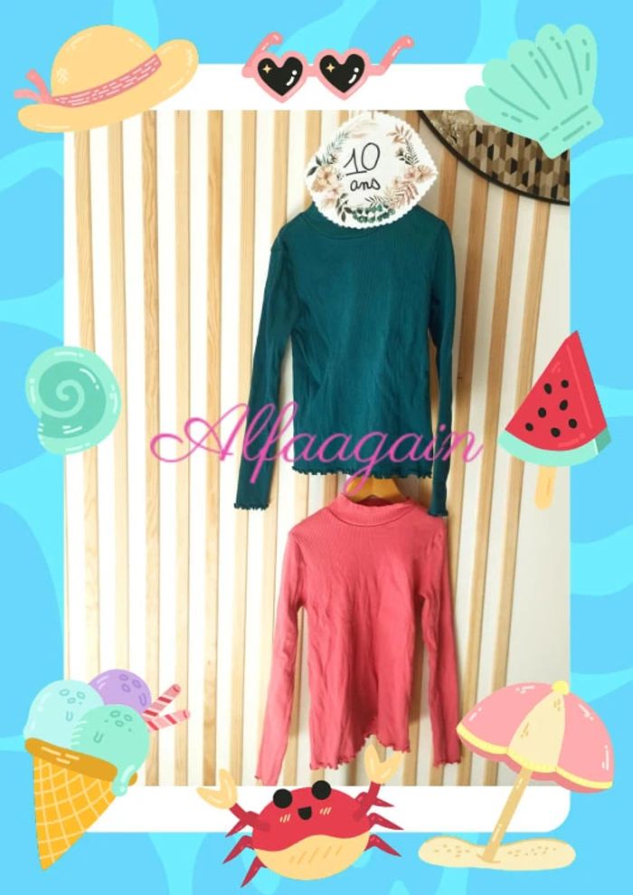 Lot de deux sous pulls côtelés un rose un vert . Volants aux rebords . Parfait état portés une fois chacun . Taille 10ans .Marque Kiabi . A vendre 6€50 --------------------------- ✏️Informations générales ✏️ 📩Expédition dans la journée en général -hors weekend. 🚭Maison non fumeur / sans animaux 📅Pas de réservation 📸Pas de photo porté 👛 Bon plan Envoi à 99ct (+20% récupéré en bon d'achat) possible uniquement pour les français- me contacter pour plus d'infos 😉 #alfaagain10ansfille #kiabi