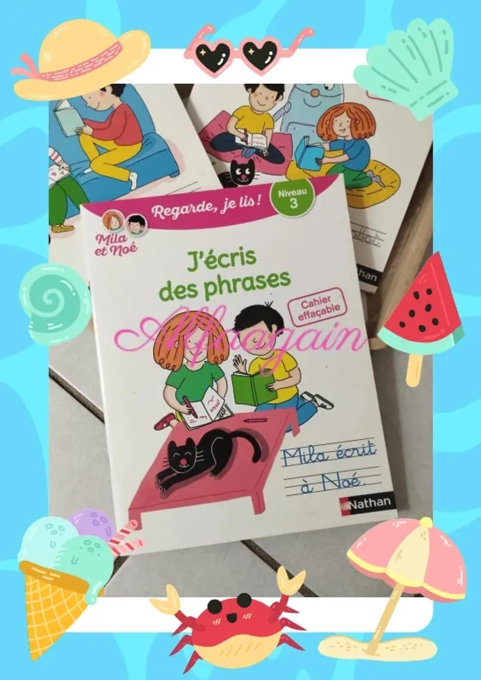 Lot de 3 livres ardoises pour apprendre à écrire, collection Mila et Noé de Nathan. Niveau un les lettres , niveau deux les mots , niveau trois les phrases Tous en parfait état d'usage, quelques traits de feutres sur les couvertures intérieures sur 2cahiers . A vendre 10€ le lot *Valeur 16€50 * --------------------------- ✏️Informations générales ✏️ 📩Expédition dans la journée en général -hors weekend. 🚭Maison non fumeur / sans animaux 📅Pas de réservation 📸Pas de photo porté 👛 Bon plan Envoi à 99ct (+20% récupéré en bon d'achat) possible uniquement pour les français- me contacter pour plus d'infos 😉 #alfaagainlivres