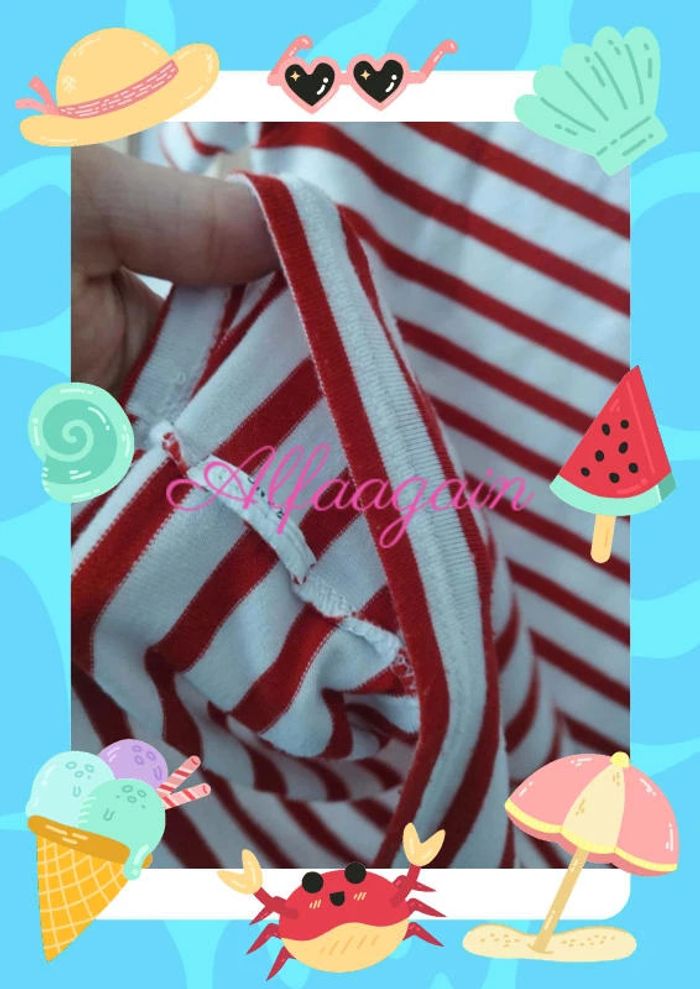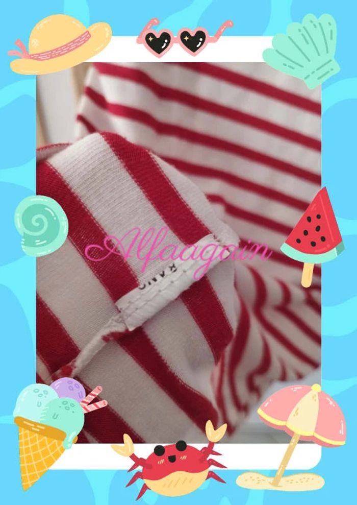 T-shirt rouge blanc rayé 8ans - photo numéro 5