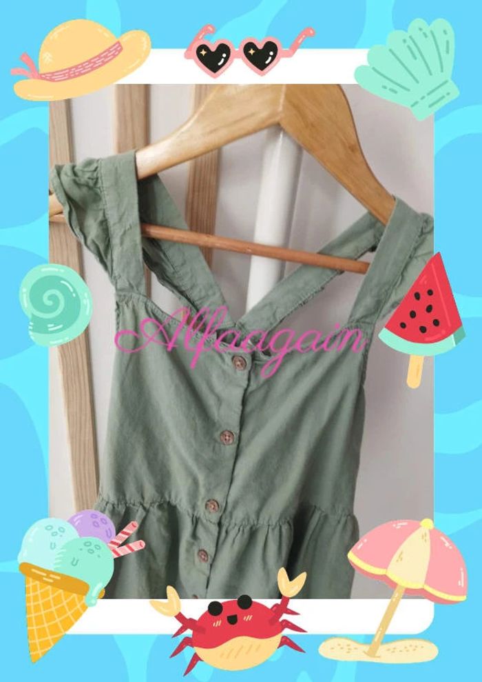 Robe verte kaki boutons en bois . Bretelles non réglables avec volants . Taille 8ans marque h&M . Très bon état peu portée A vendre 6€50 --------------------------- ✏️Informations générales ✏️ 📩Expédition dans la journée en général -hors weekend. 🚭Maison non fumeur / sans animaux 📅Pas de réservation 📸Pas de photo porté 👛 Bon plan Envoi à 99ct (+20% récupéré en bon d'achat) possible uniquement pour les français- me contacter pour plus d'infos 😉 #alfaagain8ansfille #hm