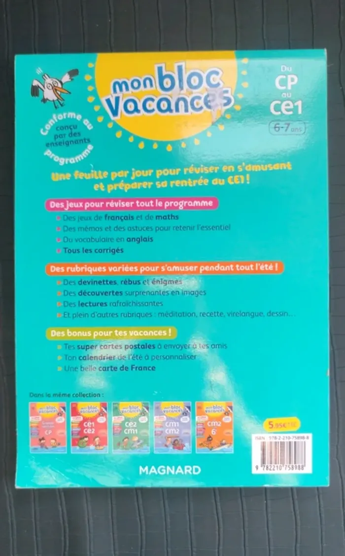 Cahier de vacances neuf mon bloc du CP au CE1