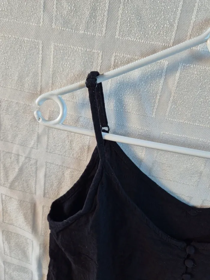 ⬇️mes autres annonces pour femme taille 36👉 #cg89femme36 un débardeur ou top noir avec des petits boutons devant. Il mesure 44 cm aux aisselles et 47 cm de longueur très bon état - taille 36 - marque gemo #tshirt #top #debardeur #gemo #ete