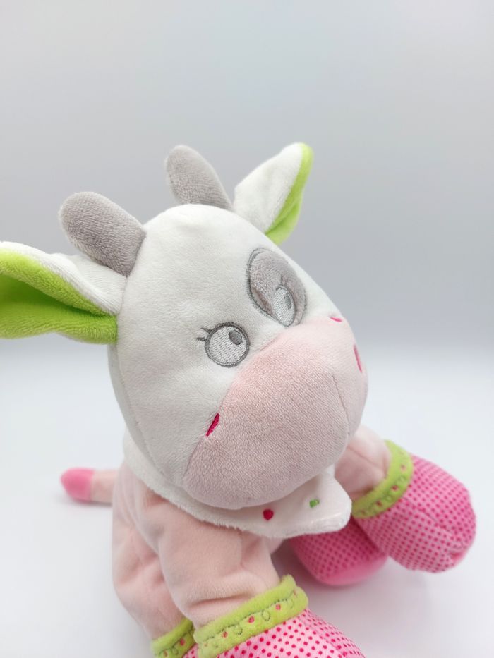 Peluche doudou vache blanche rose MOTS D'ENFANTS vert blanc pois coquard girafe Très bon état, n'a pas servi de doudou mais couture défaite à l’œil (photo 3) Environ 27 cm Envoi soigné et rapide Réf A10204 #peluche #doudou #plush #knuffel #comforter #motsdenfants #leclerc