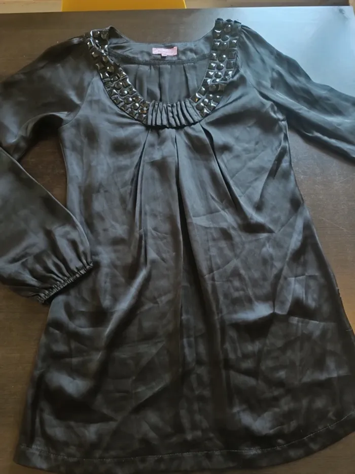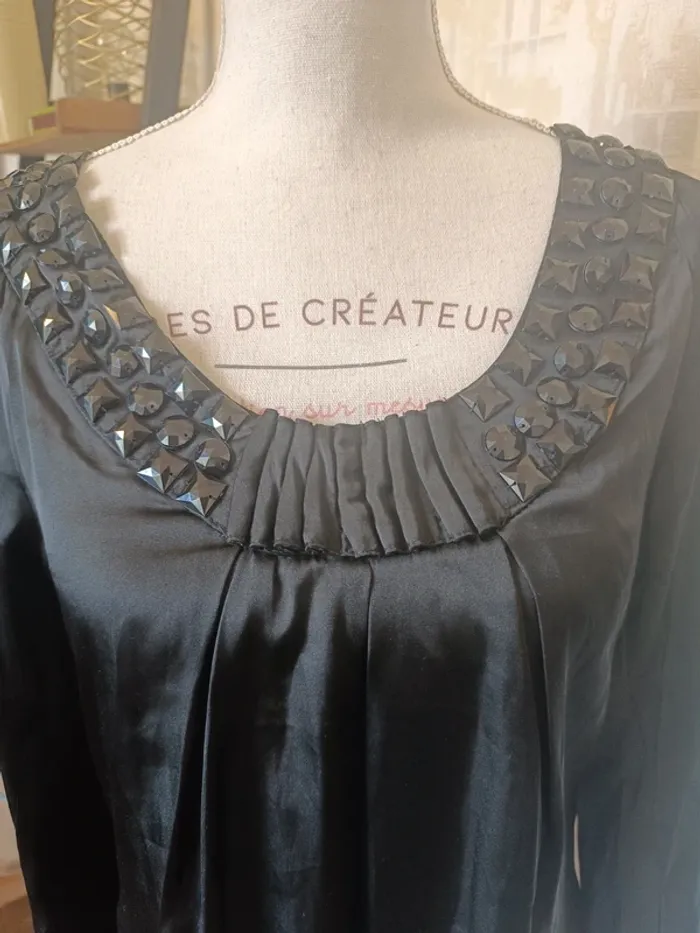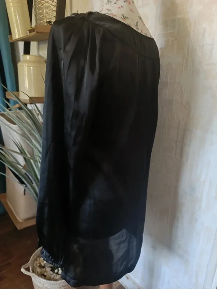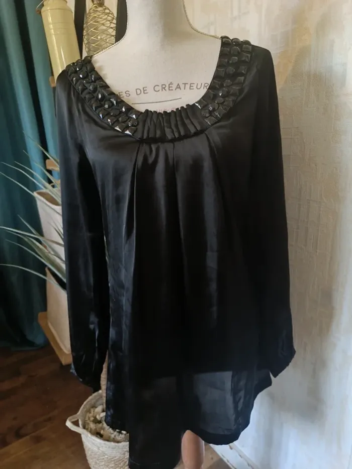 Blouse FIONELLA Noire Décolleté perlé Manches longues 100% Polyester TAILLE M TRES BON ETAT Allez voir mes autres ventes!