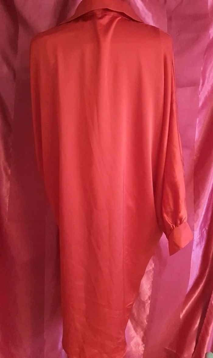 Marque: New Collection Couleur rouge, effet satiné En Polyester Largeur sous aisselles 79cms Dimensions: Longueur 96 cm Manches 3/4, effet chauve souris Envoi rapide et soigné ☺️ Remise de lot activée ❤️ #melu_femme44 #melu_curvy