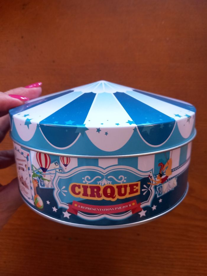 Boîte diamètre 14 cm. Hauteur 6 cm.