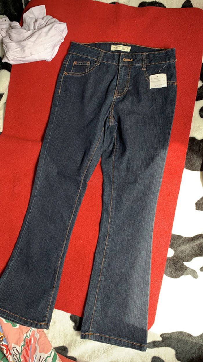 avec étiquette très jolie couleur jean bleu C&A taille 34 pas de photo portée car je ne rentre pas dedans arrive aux chevilles. idéal la saison