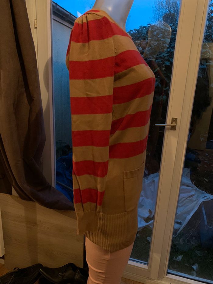 très peu porté très joli idéal pour la saison, porté avec un collant ou un jean, 2 poches avant. jolies couleurs. taille S/M
