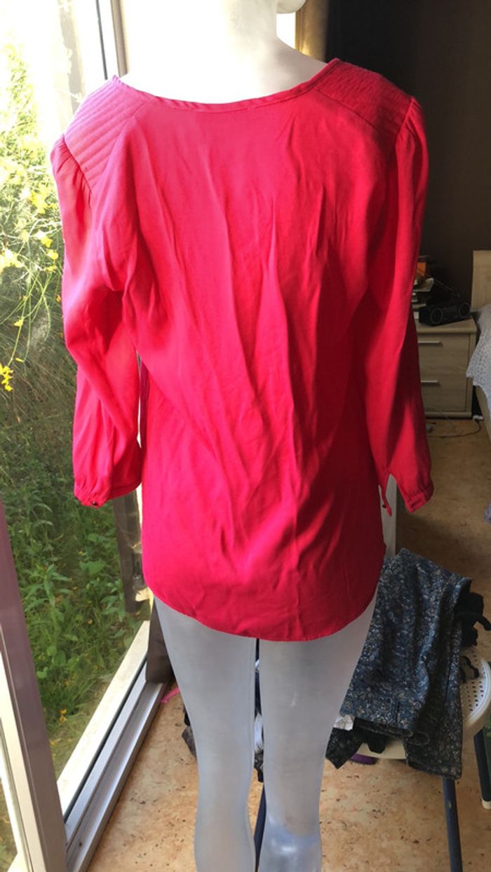 Blouse taille M portée une fois jolie rose, manches 3/4 léger effet de frottement sur le devant rien de bien visible