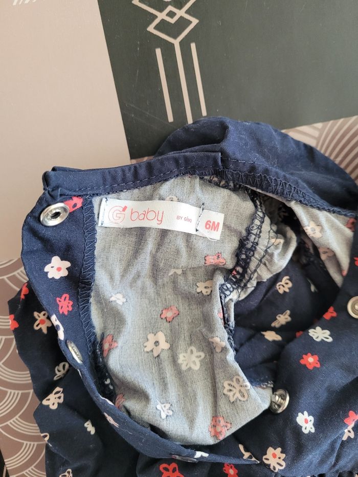 Robe gémo Taille 6 mois Bleu marine et petites fleurs Excellent état