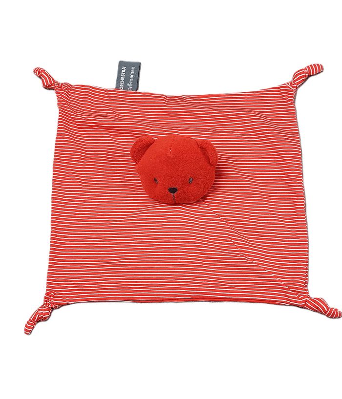 Doudou plat rayé ours rouge ORCHESTRA PREMAMAN blanc tête éponge