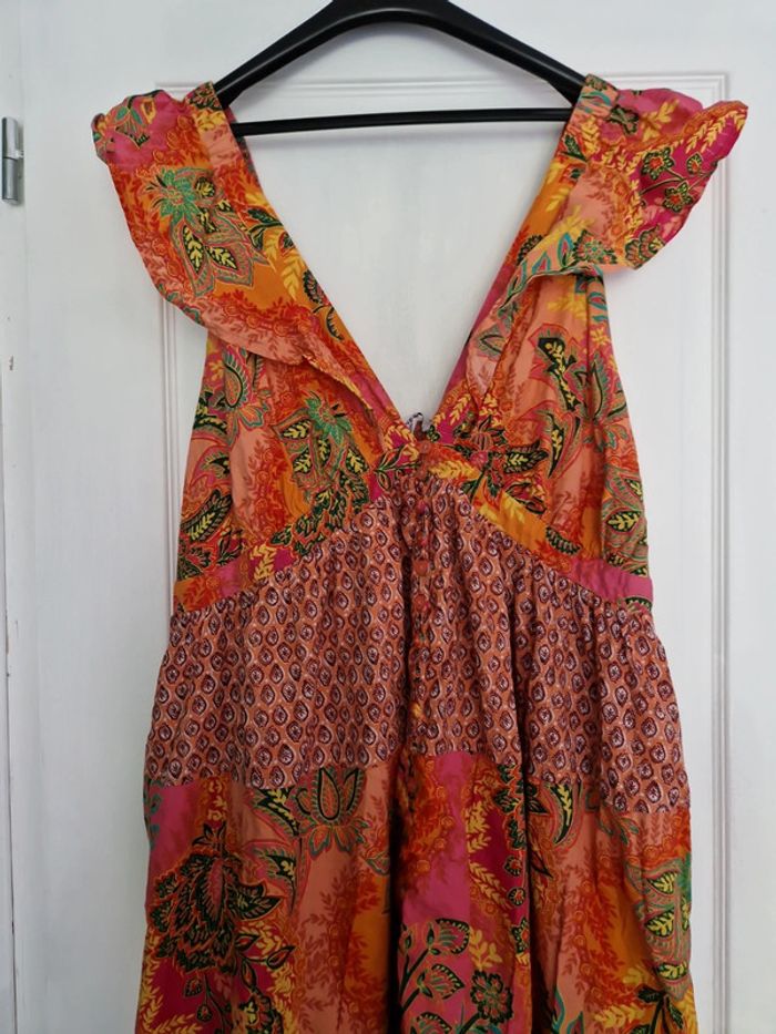 Superbe robe maxi 98% coton. Avec fibres métallisées argentées Marque next Taille 50 Couleurs orange rose vert jaune Très élégante et estivale Toujours en vente sur le site de Zalando à 52 euros #next #taille50 #robemaxi #curvy