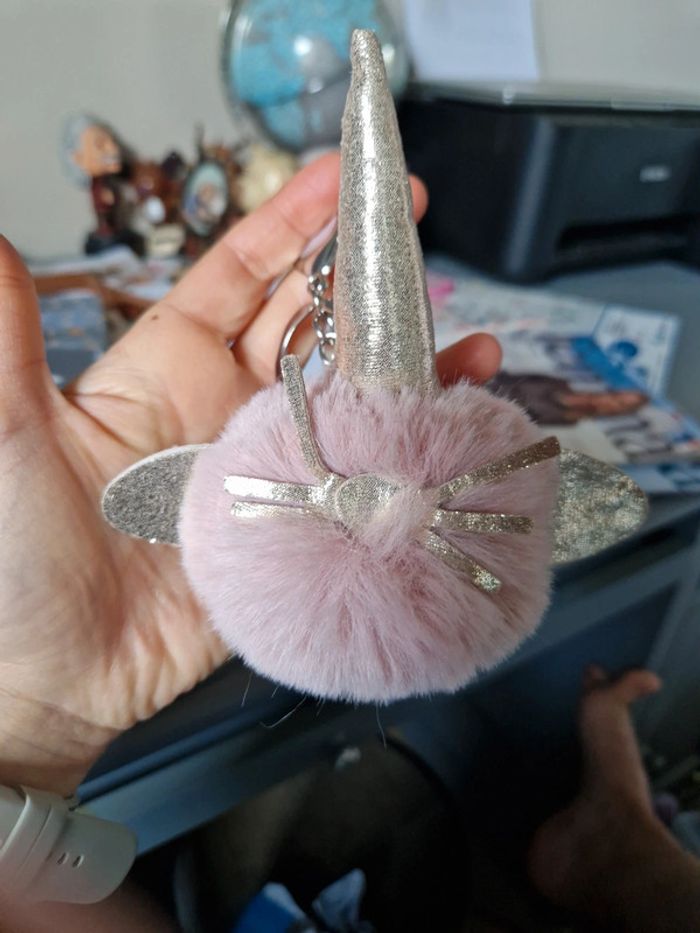 Porte clés chat fourrure licorne - photo numéro 2