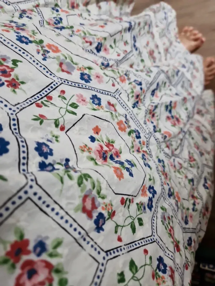 Superbe jupe midifleurie Avec broderies Style bohème rétro boho Taille 46marque tu #taille46 #broderies #broderieanglaise #fleurs #boho #bohème #romantique