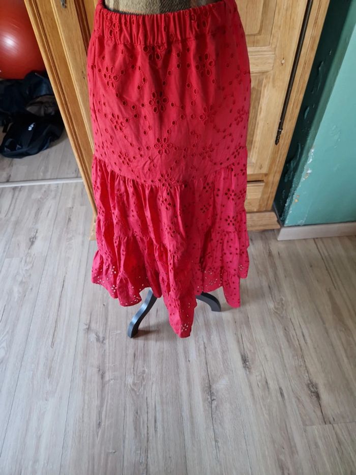Jupe longue maxi en broderies anglaise rouge framboise promod taille xl - photo numéro 1