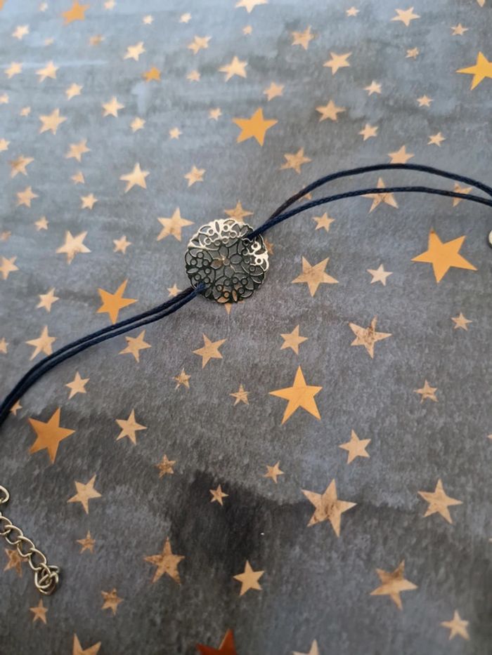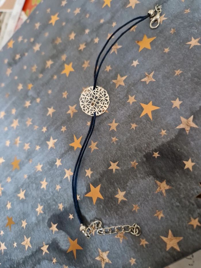 Joli petit bracelet arabesque Argenté Avec lien en ficelle bleue #arabesque #bracelet