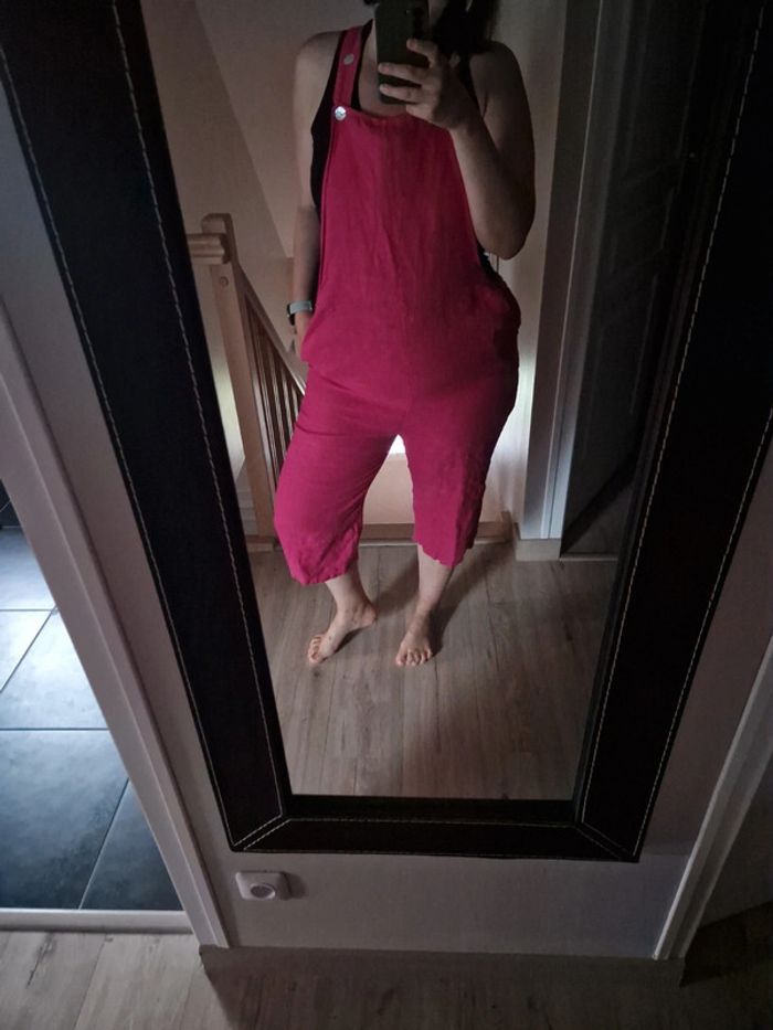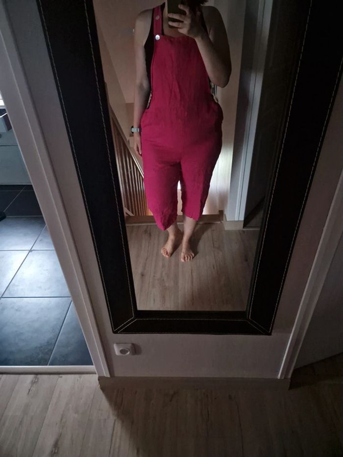 Salopette vintage fushia 100% lin made in italy - photo numéro 2