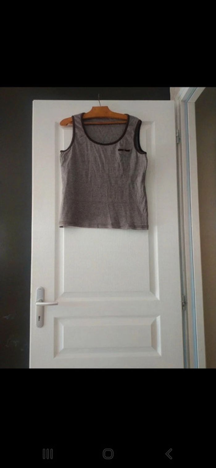 Débardeur rayé marron et gris taille L vintage - photo numéro 3