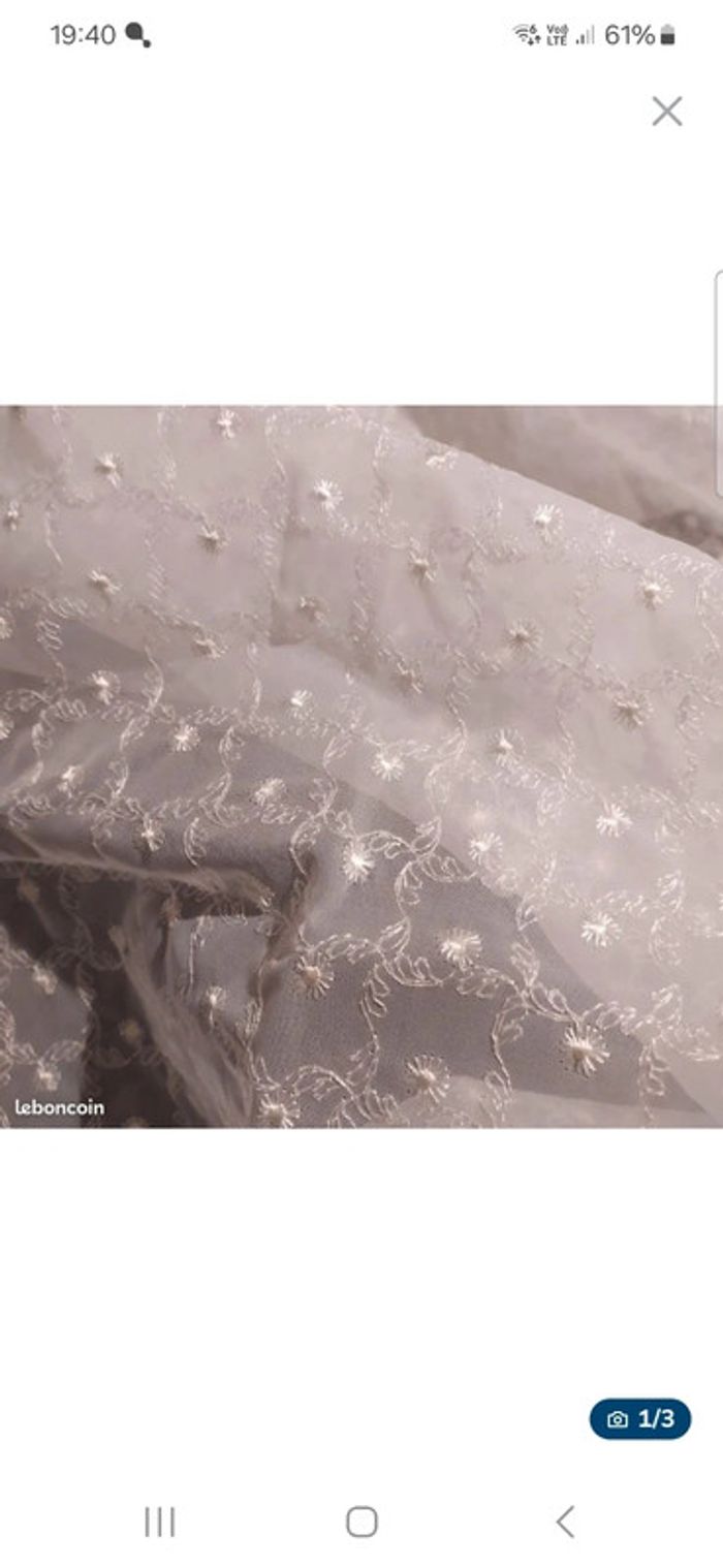 Coupon de tissu brodé 85 cm sur 100 Neuf Vintage Parfait pour travaux de couture #couture #coudre #coupon #broderie #blanc #transparent #voile