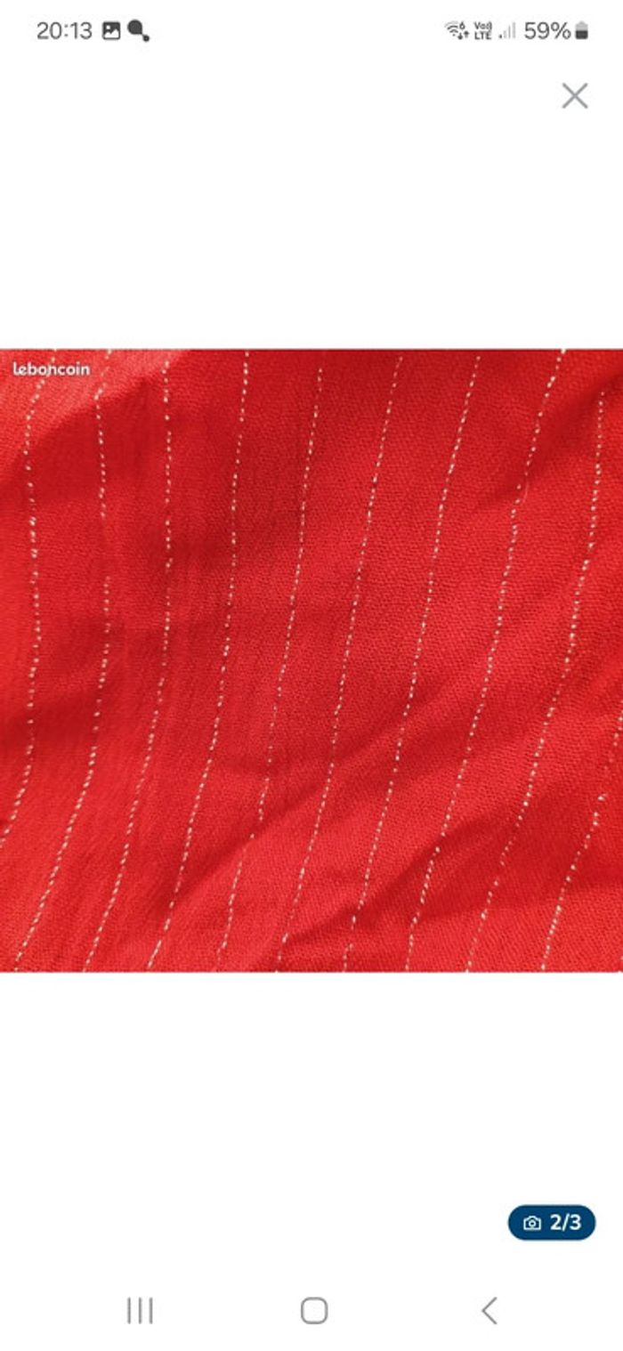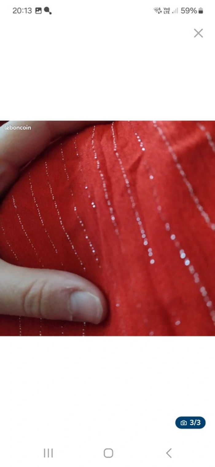 Grand Coupon de tissu crinkle rouge et fil argenté style lurex - photo numéro 2