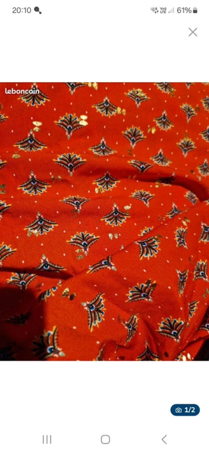 Coupon de tissu type viscose polyester rouge doré - photo numéro 2