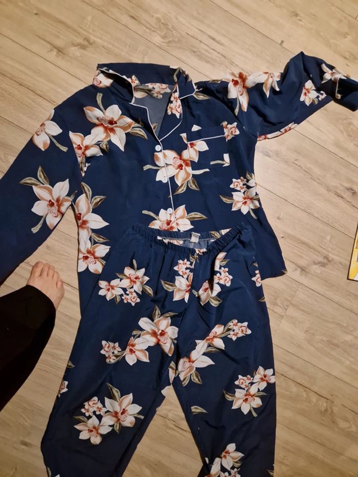 Pyjama style peignoir fluide fleurs taille xl - photo numéro 2