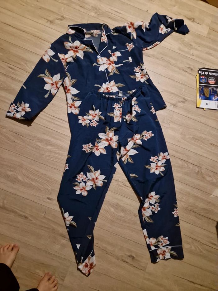 Pyjama style peignoir Fluide Fleurs Bleu Taille xl #pyjama #pyjamafluide #fleurs #taillexl