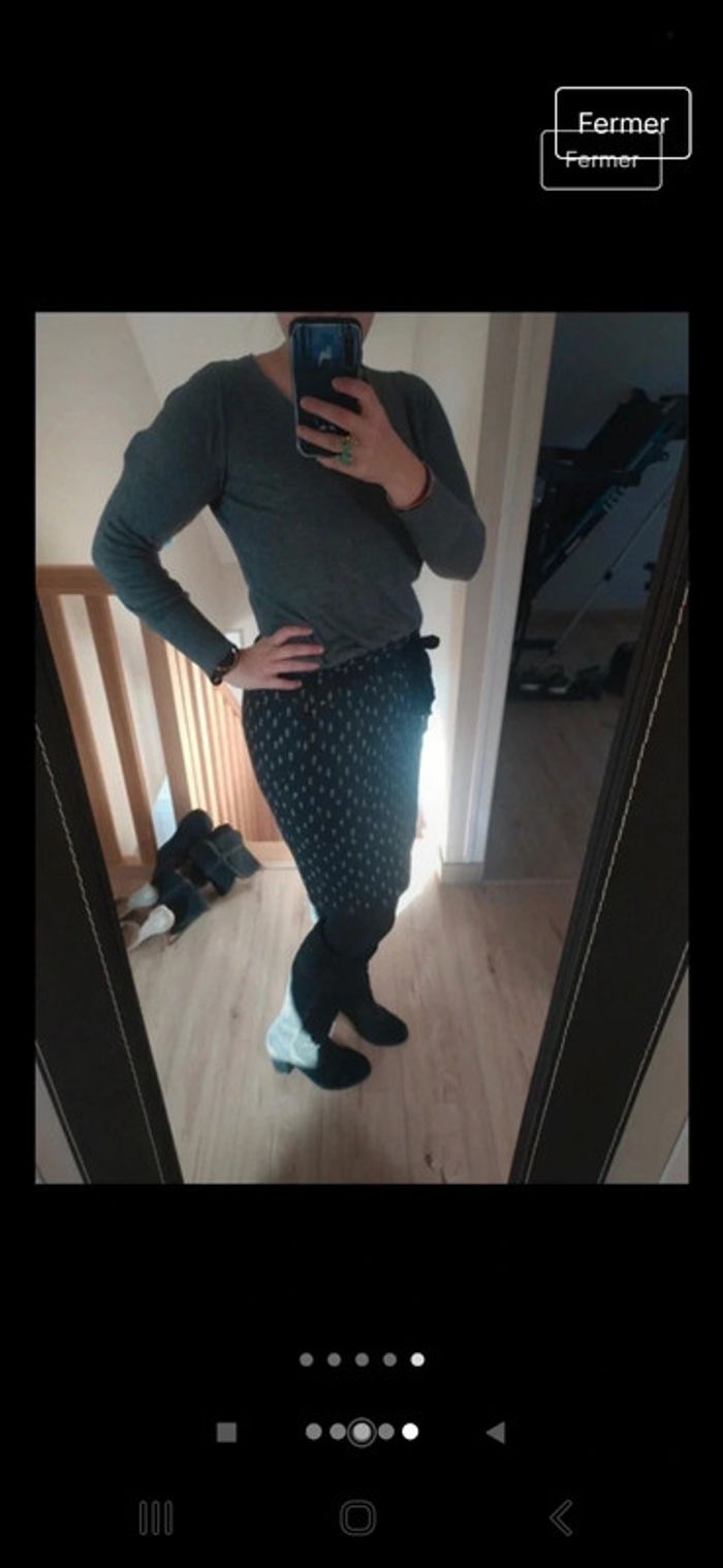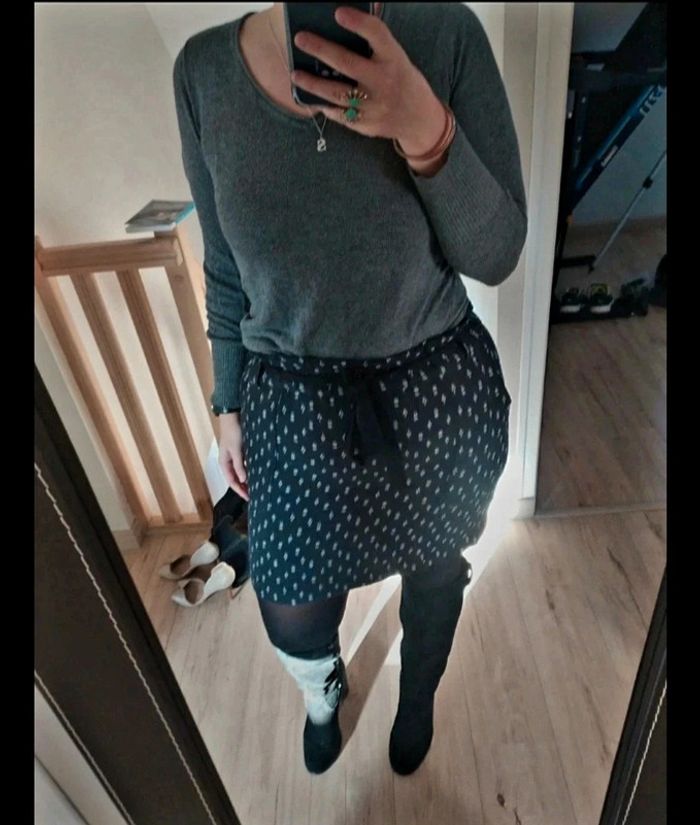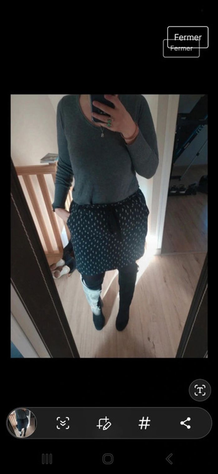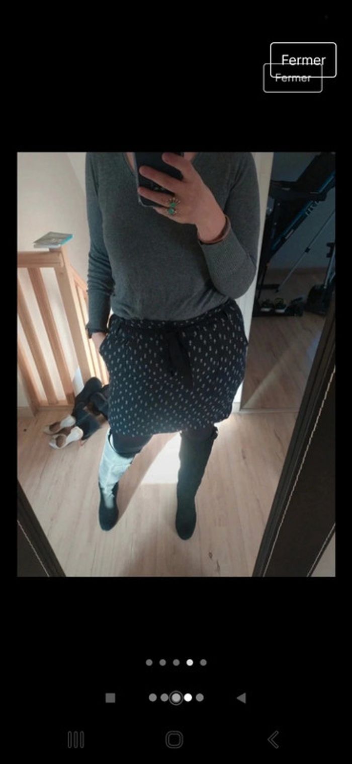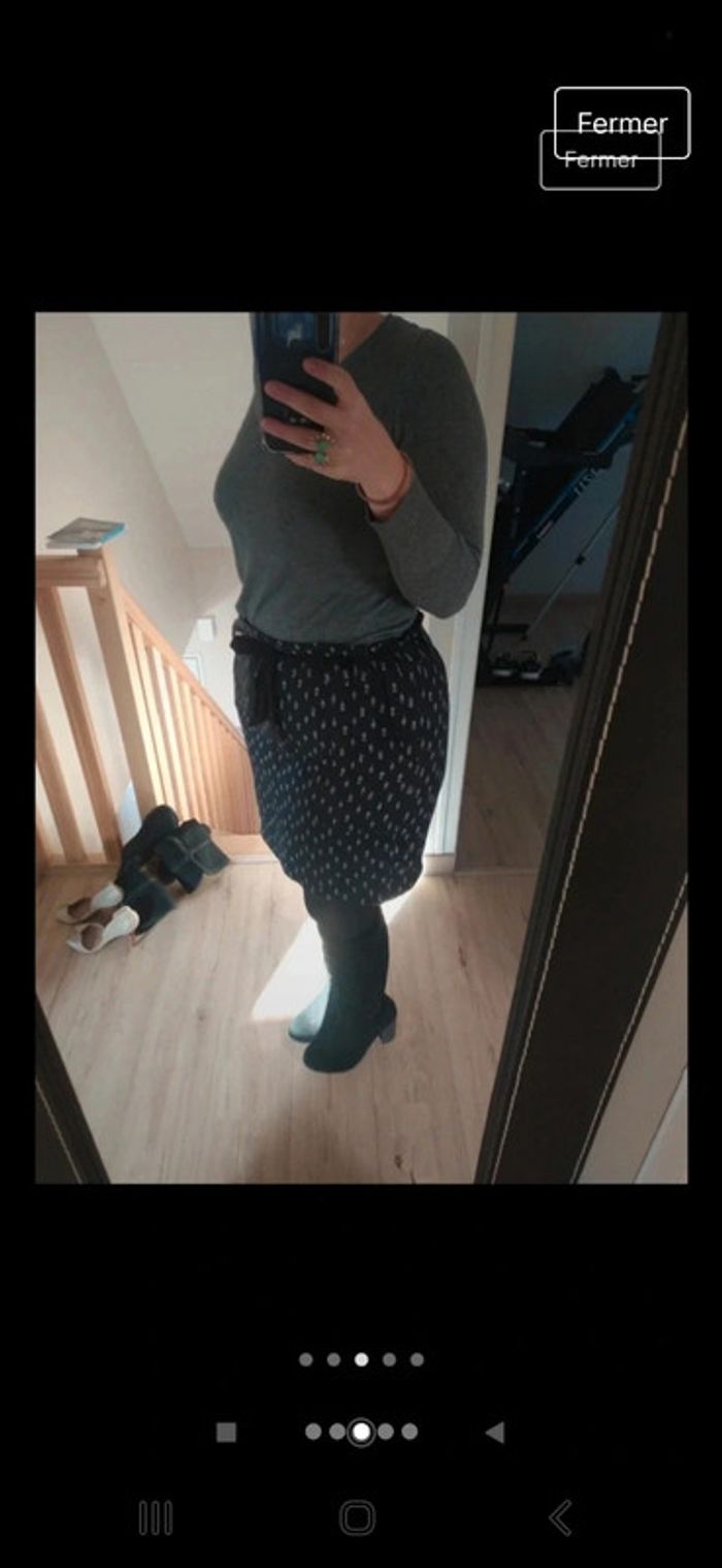 Taille 42 Portée 2 fois Très jolie avec sa forme paperbag Sa petite ceinture et ses motifs blancs #jupepaperbag #camaieu #paperbag