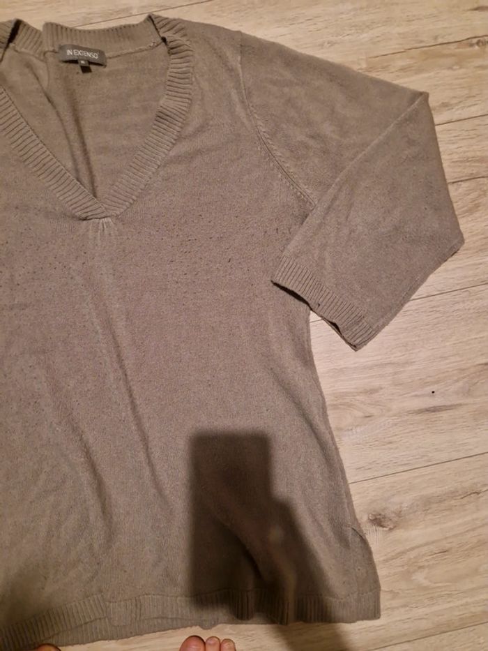 Pull long façon tunique Beige Avec manches trois quart très doux Marque in extenso Taille xl Attention il a des bouloches mais avec un rasoir, il devrait retrouver une deuxième jeunesse #inextenso #pulldoux #pulllong #pulltunique #pulloversize #taillexl