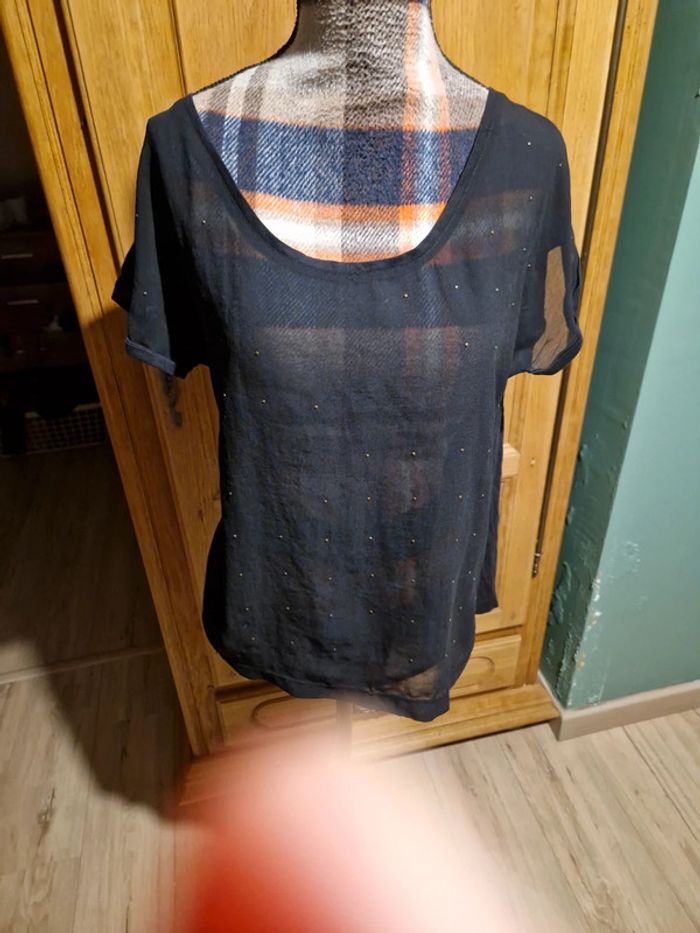 T-shirt noir transparent resille taille xl clous - photo numéro 1