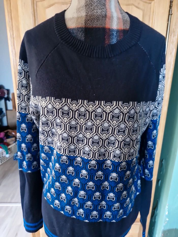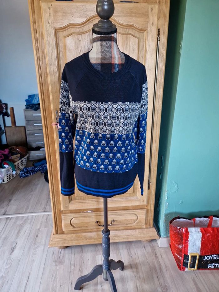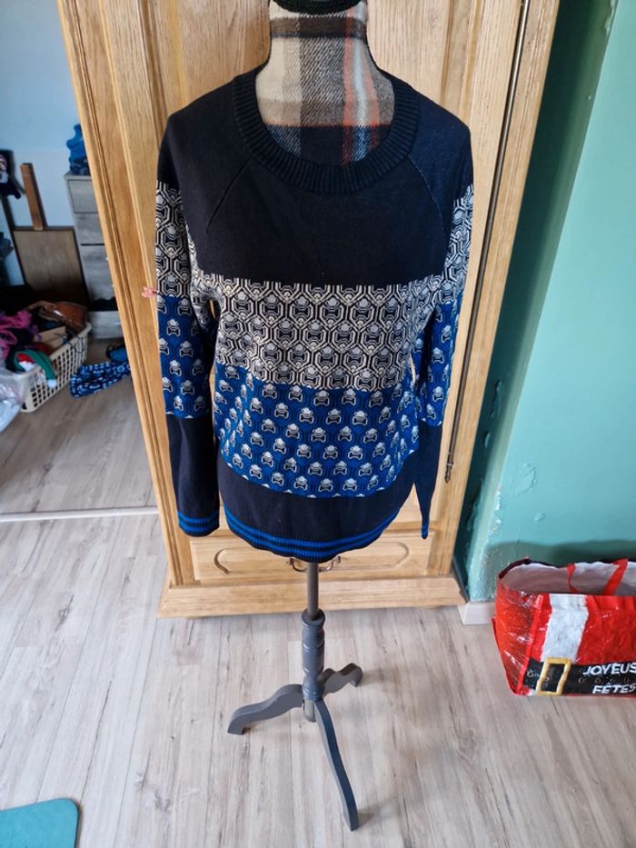 Joli pull jacquard original taille s next bleu - photo numéro 1
