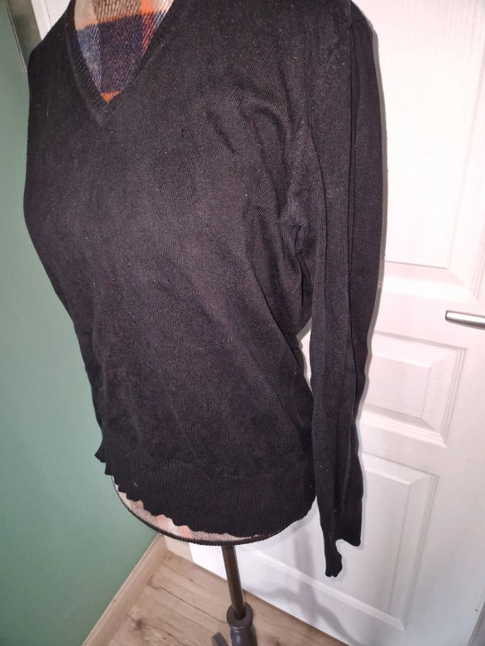 Pull fin noir col v Vintage 77% coton Taille 44 - photo numéro 2