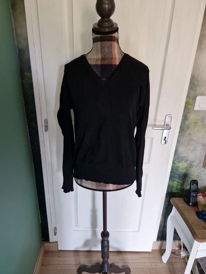 Pull fin noir col v Vintage 77% coton Taille 44 - photo numéro 1