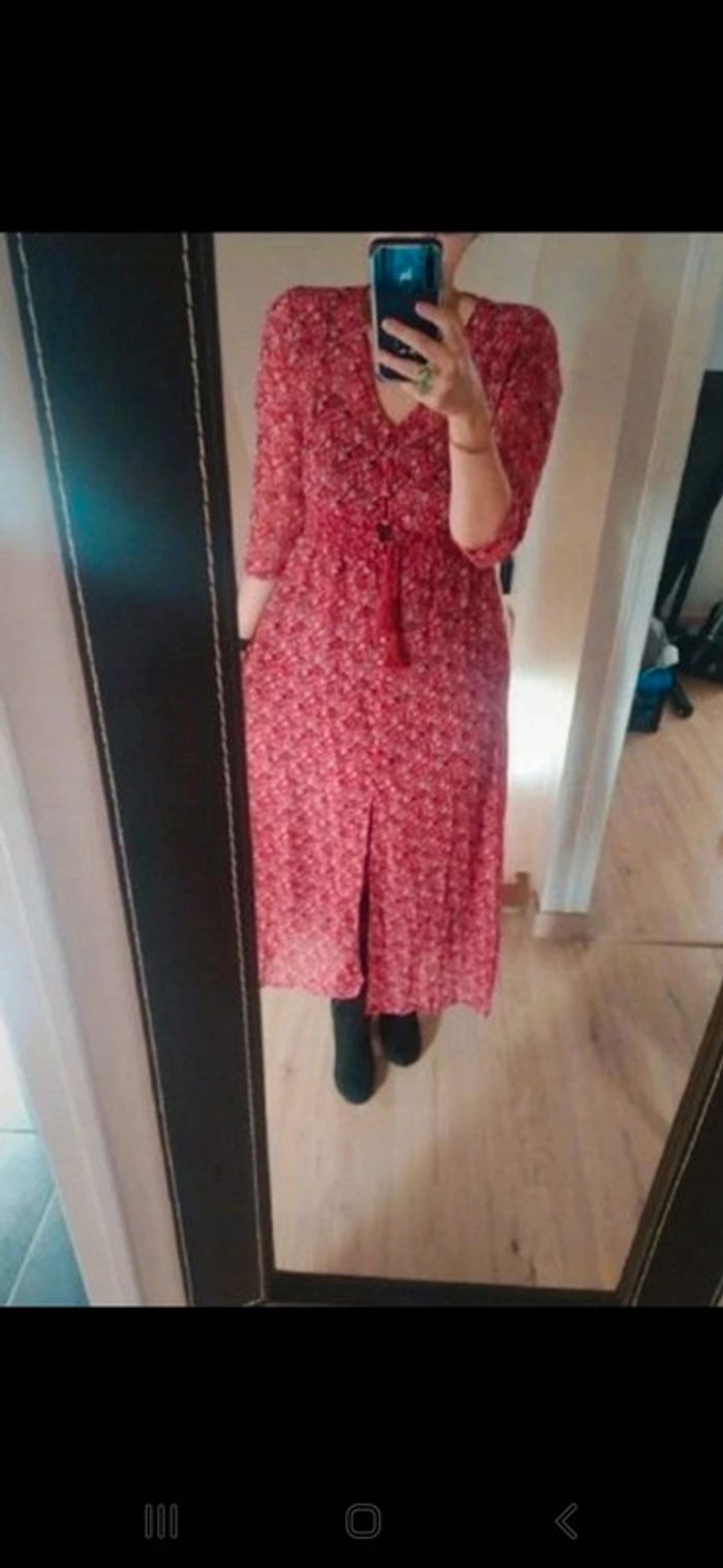 Superbe dessus de robe Peut aussi servir de gilet long sur un pantalon et un débardeur Rouge à fleurs Taille L Attention c'est transparent. Il faut mettre un fond de robe ou le porter sur un jeans et un t shirt Superbe pour un look bohème #robe #transparent #sexy #glamour #taillel #fleurs #robefleurie #gilet #cardigan #boheme