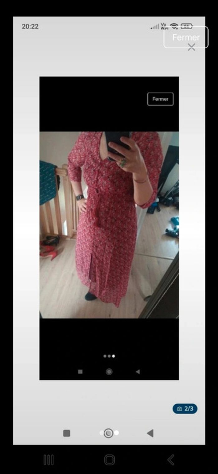 Dessus de robe gilet long transparente rouge à fleurs taille L - photo numéro 2