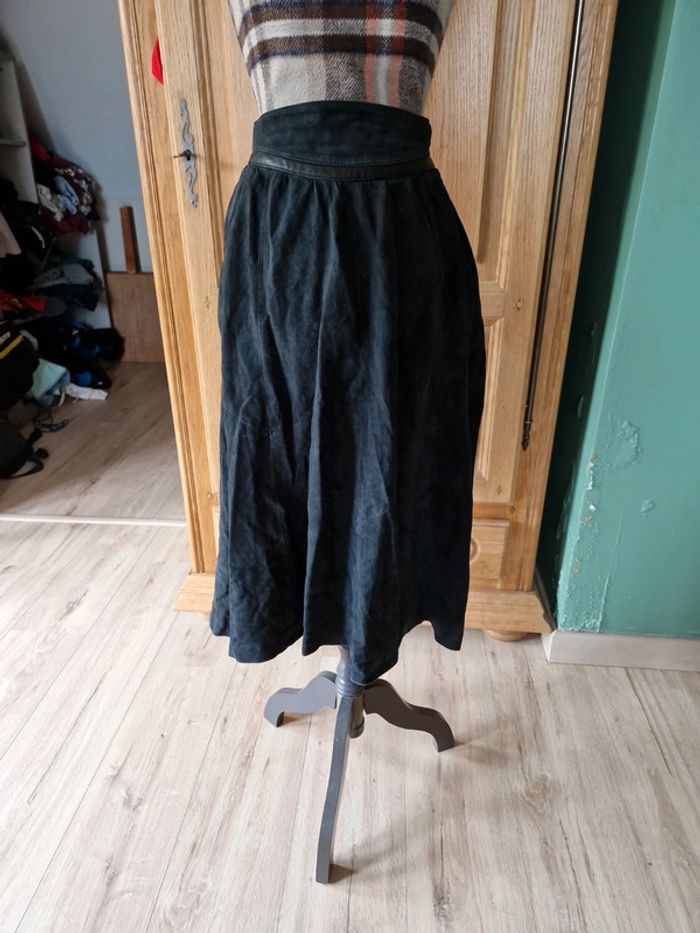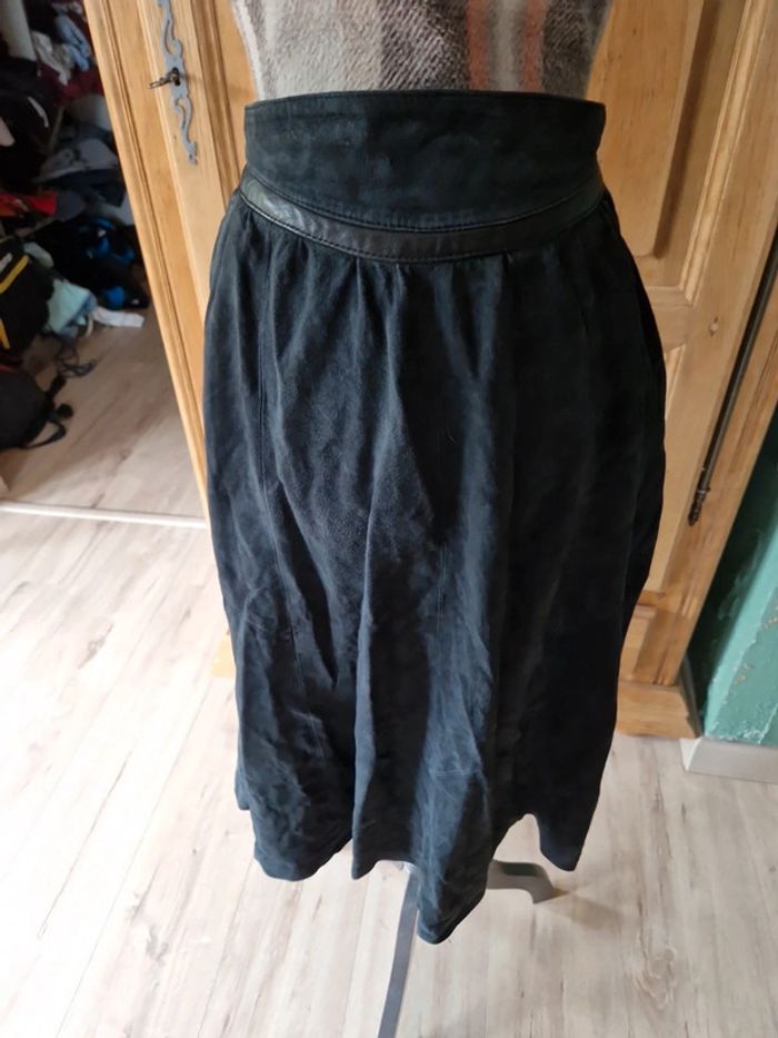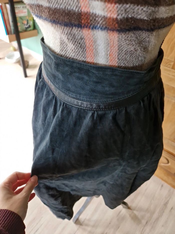 Superbe jupe midi taille 38 bleu marine cuir - photo numéro 4