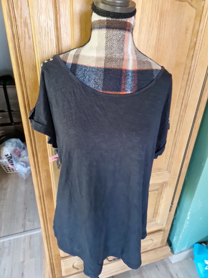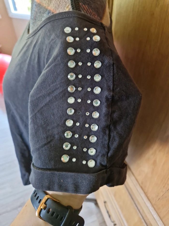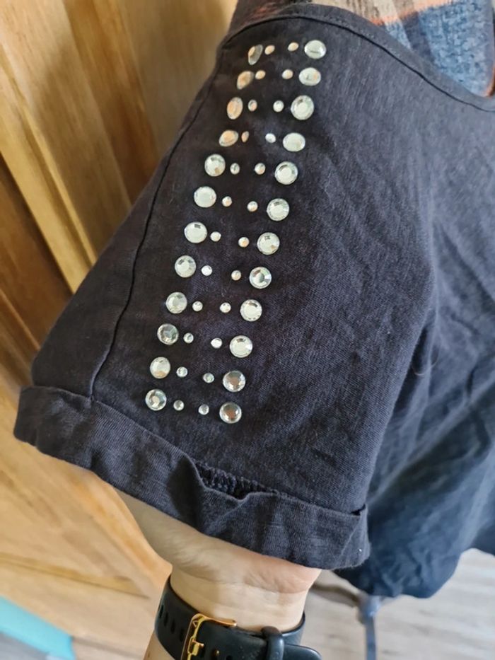 T-shirt oversize Gris anthracite chiné Taille l Avec sequins sur les épaules (il en manque un) Pimkie Vintage Date des années 2000 #vintage #y2k #annees2000 #rock #pimkie #pimkievintage #oversize